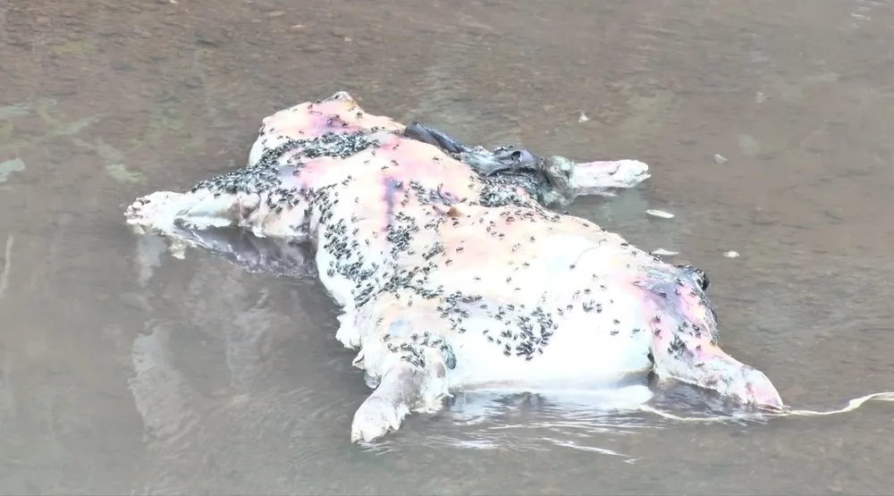 Trước đó, người dân sinh sống ở đoạn cầu Suối Râm (xã Sông Nhạn) bức xúc vì phát hiện nhiều xác heo chết có ruồi, nhặng, bọ gậy vây quanh, mặt nước đen ngòm, bốc mùi nồng nặc.