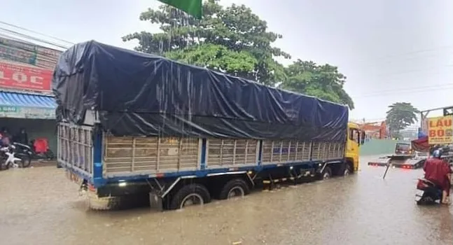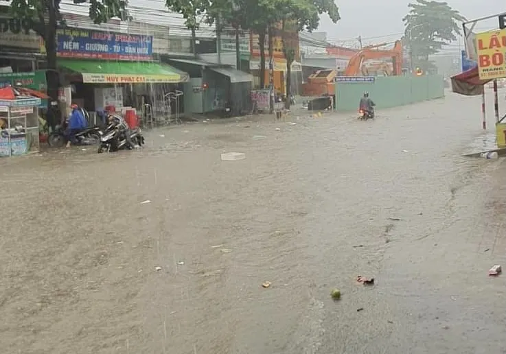 Theo ghi nhận của phóng viên tại khu vực cổng 11, thuộc TP Biên Hòa, mưa lớn khiến lượng nước các nơi đổ dồn về khu vực này, thoát không kịp, gây ngập nặng các tuyến đường Võ Nguyên Giáp, Bùi Văn Hòa và Quốc lộ 51.