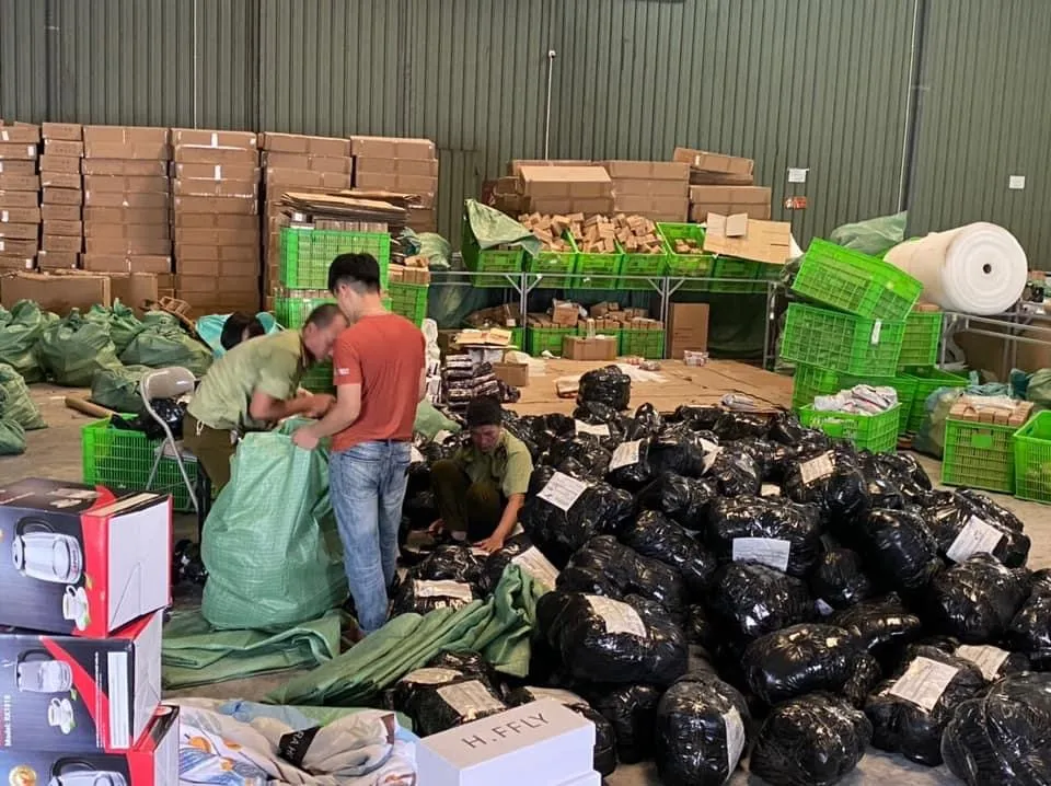 Đến thời điểm này, tổng số hàng hoá mà cơ quan chức năng kiểm đếm được là trên 100.000 sản phẩm và hơn 20 bao hàng hoá còn lại đang được tiếp tục kiểm đếm.