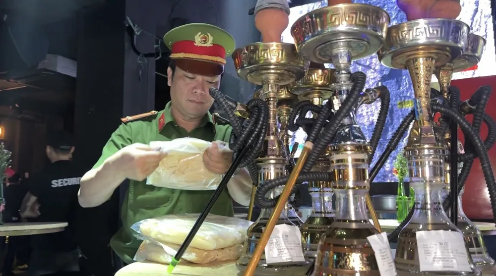 Cùng thời điểm, tổ công tác khác ập kiểm tra quán bia club Space Bar, số 105 đường Bùi Viện. Tại quán bia này, lực lượng chức năng đã nhắc nhở nhiều lỗi vi phạm trong hoạt động kinh doanh. Đồng thời, tạm giữ và bàn giao cho Công an phường Phạm Ngũ Lão nhiều bình thuốc shisa chưa rõ nguồn gốc, hoá đơn chứng từ.