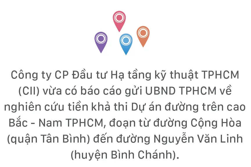 Công ty CP Đầu tư Hạ tầng kỹ thuật TPHCM (CII) vừa có báo cáo gửi UBND TPHCM về nghiên cứu tiền khả thi Dự án đường trên cao Bắc - Nam TPHCM, đoạn từ đường Cộng Hòa (quận Tân Bình) đến đường Nguyễn Văn Linh (huyện Bình Chánh).