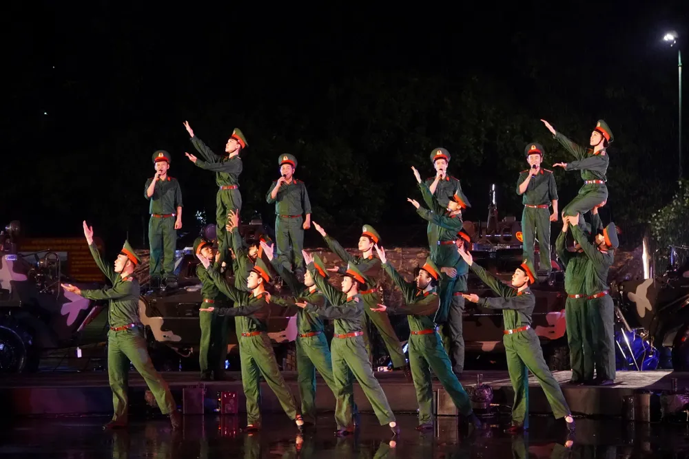 Chương trình trình diễn các ca khúc âm nhạc: Hát mãi khúc quân hành, Lá cờ, Màu hoa đỏ, Người sống mãi trong lòng miền Nam, Trái tim người chiến sĩ, Bay qua biển Đông, Vì nhân dân quên mình… với sự góp mặt biểu diễn của ca sĩ Đông Nhi, Thanh Sử, Tạ Quang Thắng, Hòa Minzy, Thành Tâm, Phan Ngọc Luân, Minh Sang, Chính Hưng, Đăng Quân, Quốc Đại, Cao Công Nghĩa, nhóm MTV, Trung đoàn Gia Định, đội quân nhạc Bộ Tư Lệnh TPHCM, ban nhạc SPO, nhóm múa Mặt Trời…