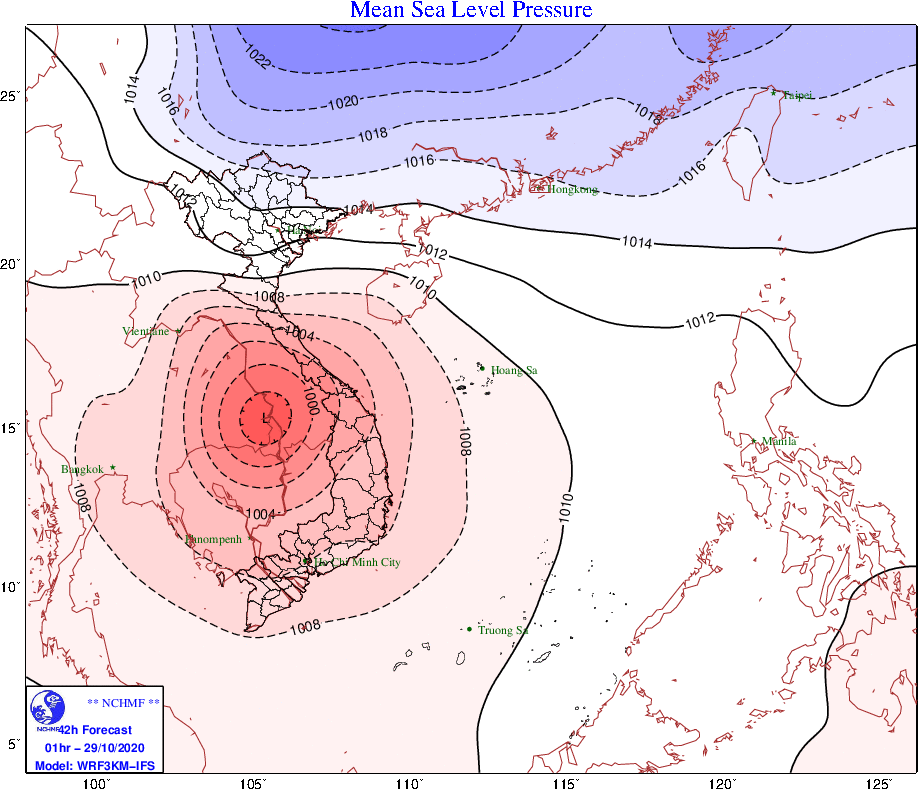 Các đài quốc tế nhận định, bão số 9 sẽ cập đất liền Việt Nam vào khoảng 10 giờ sáng nay 28-10. Tâm bão đi vào khu vực Quảng Ngãi - Quảng Nam nhưng ảnh hưởng trên một vùng rộng lớn.