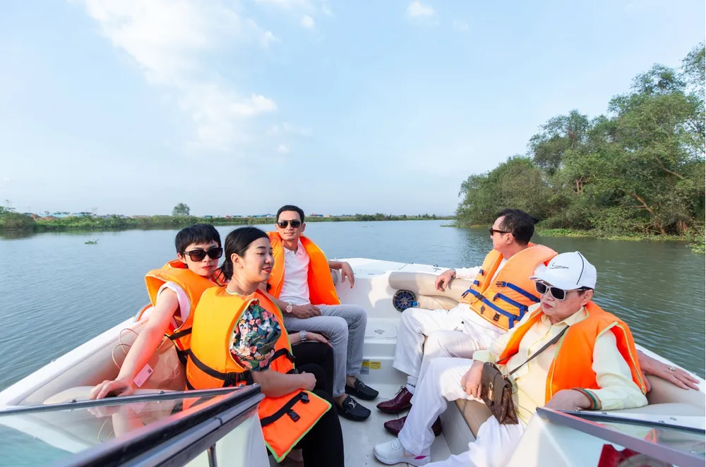 Tham gia tour tham quan dự án bằng đường sông, khách hàng được tận hưởng cảm giác thư thái trong không gian sông nước xanh mát, thưởng thức âm nhạc... nhằm khắc họa cuộc sống chất lượng cao của cư dân Aqua City trong tương lai.