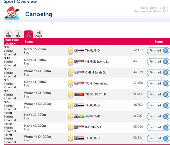 Kết thúc thi đấu SEA Games 28-2015, đua thuyền canoeing Việt Nam giành được 1 HCV và 4 HCĐ.