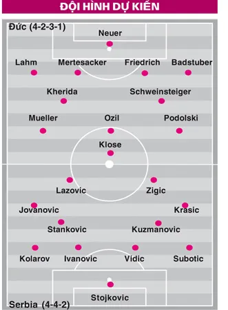 Vậy mà Serbia lại mất hậu vệ cánh Lukovic vì treo giò (nhận 2 thẻ vàng trong trận thua 0-1 trước Ghana), người thay thế anh Kuzmanovic lại không có tâm lý ổn định sau khi phạm sai lầm quá lớn tặng không quả 11m cho Ghana… Một mình Vidic không đảm đương cho cả hàng phòng ngự. Serbia, trước khi nghĩ cách đánh bại Đức, phải làm sao để bảo vệ mành lưới của mình. HLV Antic thừa nhận trận đấu với Đức chiếm tâm trí của ông nhiều đến mức ông chẳng còn nhớ những sai lầm ở trận thua Ghana.