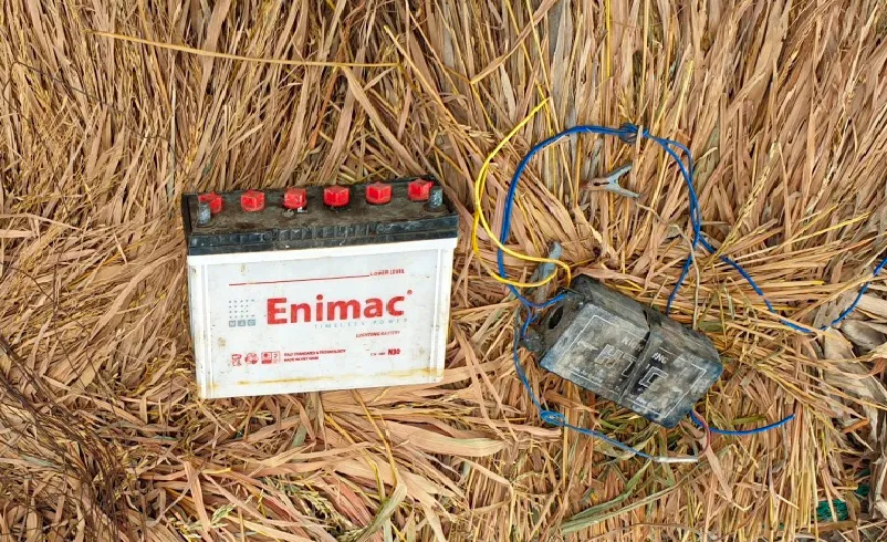Đến khoảng 18 giờ 30 phút ngày 8-3, Được lấy bộ biến điện (kích xung điện) nối với bình ắc quy 12V rồi đấu nối vào dây kim loại đã giăng sẵn hôm trước.