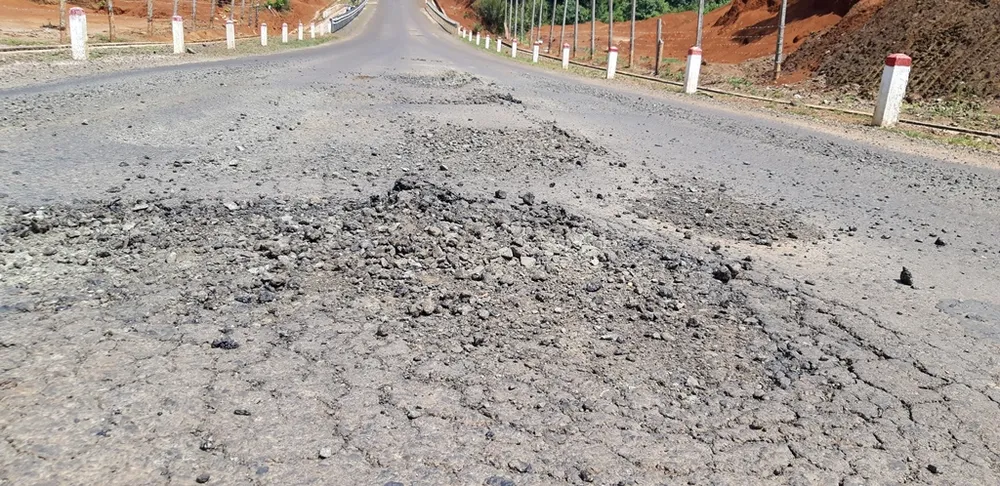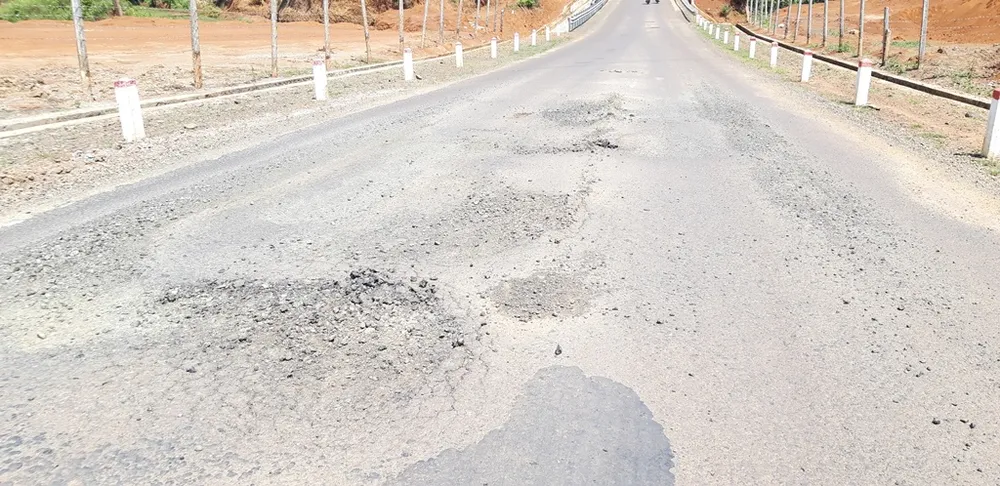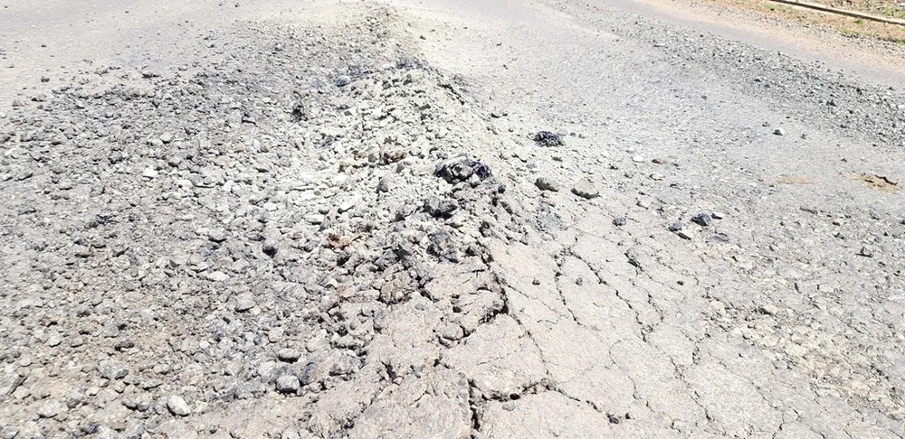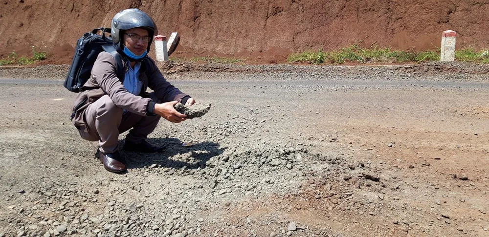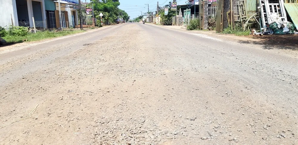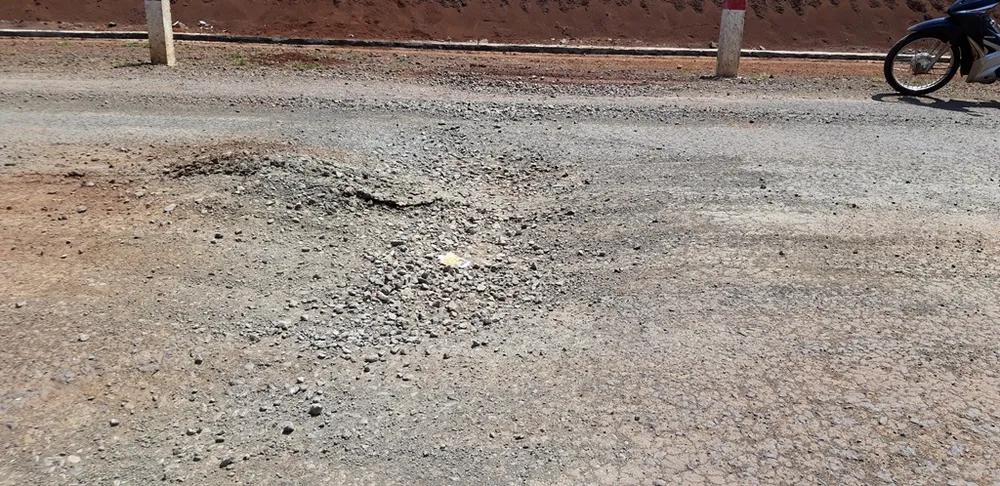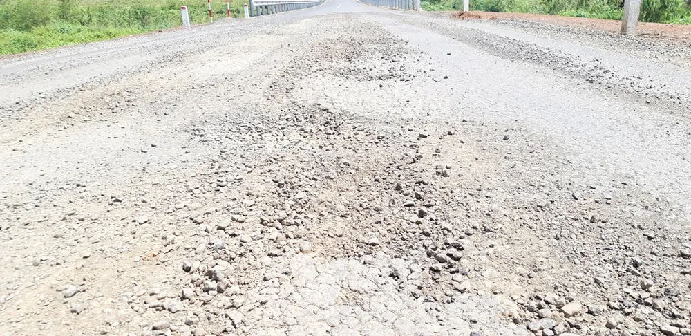 Ghi nhận thực tế, mặt đường nhựa bị cày xới nham nhở. Đá dăm nổi lởm chởm lên mặt đường. Có những vị trí mặt đường nhựa bong tróc, nứt và cong vênh. Có chỗ lớp nhựa mặt đường bị rời ra, khi đưa tay bẻ thì vỡ toác. Có đoạn dài khoảng 100m nhưng hàng chục "ổ gà" nằm nối tiếp nhau.