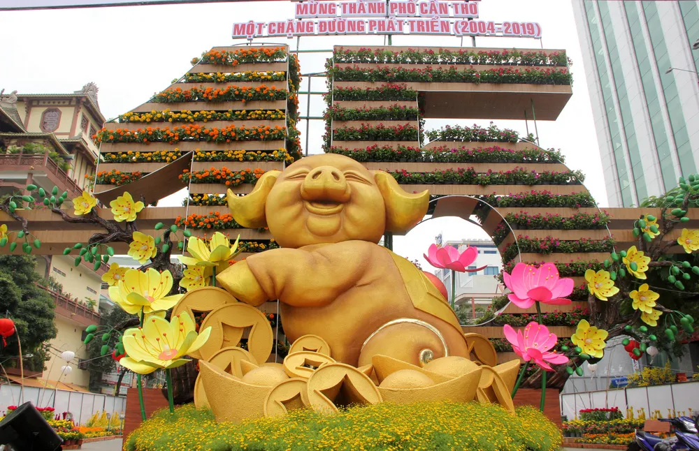 Đường hoa nghệ thuật Cần Thơ năm 2019 được thiết kế gắn với chủ đề “Cần Thơ 15 mùa hoa”, đánh dấu cột mốc quan trọng 15 năm TP Cần Thơ trực thuộc Trung ương (2004-2019).