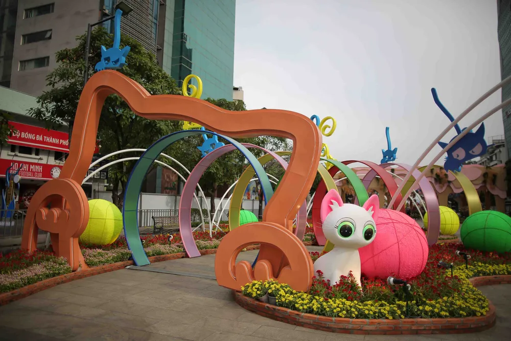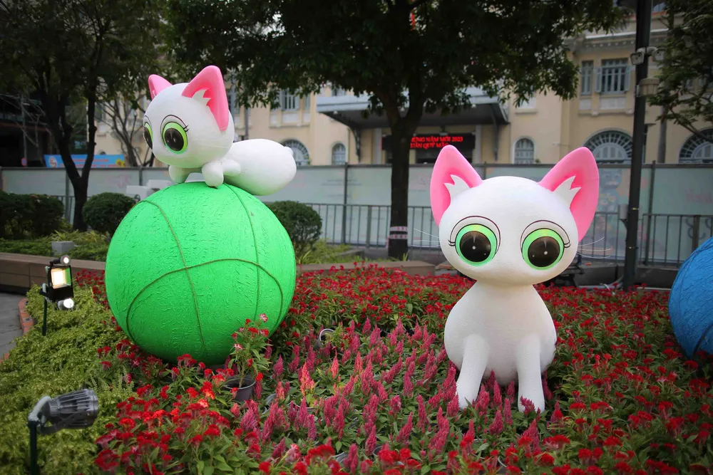 Đôi Mèo to lớn được thiết kế ở cuối Đường hoa. Ảnh: DŨNG PHƯƠNG |
