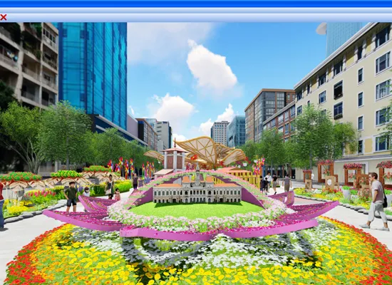 Tiểu cảnh “Thành phố trong tranh” những nét họa trên những bình gốm cao, suối hoa, hay hình ảnh Tết miền Nam với mâm ngũ quả, bánh chưng, bánh tét; hình ảnh cuộc sống đậm chất Nam Bộ với thuyền trái cây sông nước, đờn ca tài tử, các chú gà đạp xe hoa đi chợ tết...