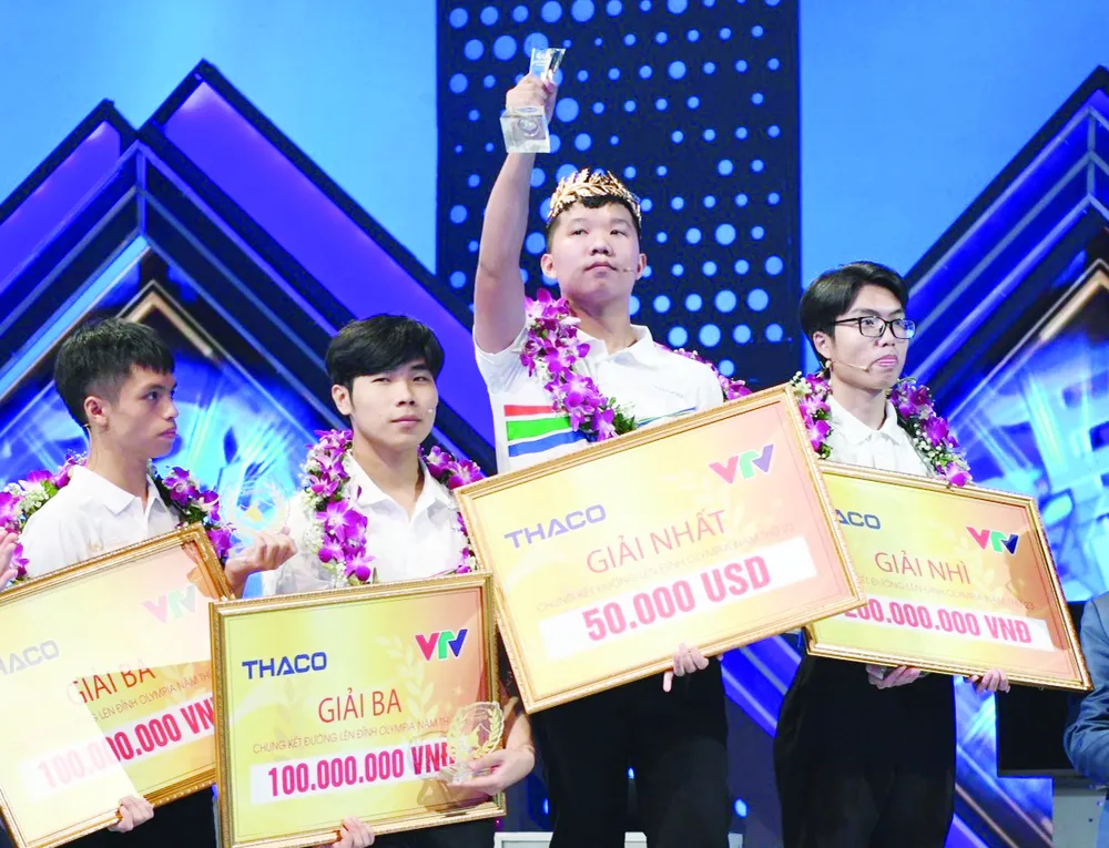 Chung kết Đường lên đỉnh Olympia lần thứ 23 diễn ra với sự đua tài từ 4 “nhà leo núi”: Nguyễn Việt Thành (học sinh Trường THPT Sóc Sơn, Hà Nội), Nguyễn Minh Triết (Trường THPT chuyên Quốc học Huế, tỉnh Thừa Thiên Huế), Lê Xuân Mạnh (Trường THPT Hàm Rồng, tỉnh Thanh Hóa) và Nguyễn Trọng Thành (Trường THPT Chuyên Trần Phú, Hải Phòng).