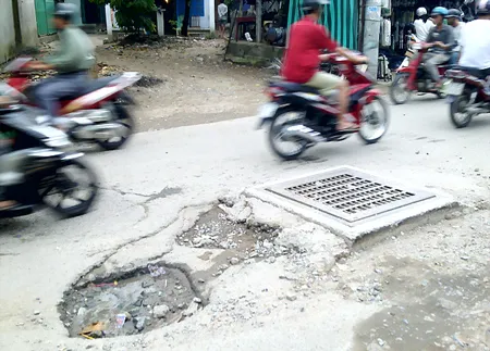 Trước số nhà 954 đường An Dương Vương, phường 13, quận 6, TPHCM có một hố ga giữa đường, nhô cao (ảnh) gây nguy hiểm cho người đi đường, nhất là khi trời tối. Bên cạnh hố ga lại có những chỗ lồi lõm, những lúc mưa to bị ngập khiến nhiều người đi xe máy qua không nhìn thấy, bị té ngã.
