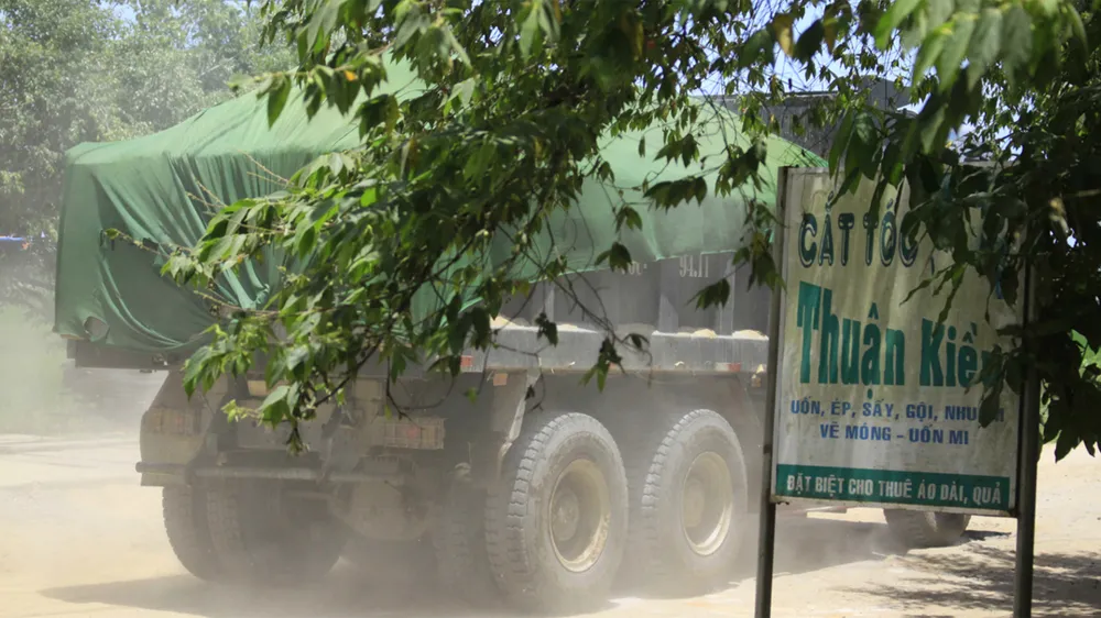 Bà Võ Thị Tường Vy, thôn Năng Xã, cho biết: “Mỗi lần các xe chở đất, cát, vật liệu xây dựng qua lại thì đường rất bụi, đất đá đổ xuống đường, những ngôi nhà ở xung quanh đều bụi bám đầy”.