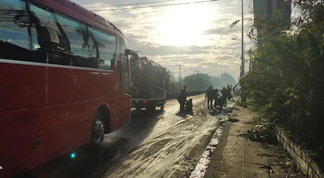 Cụ thể, vào lúc 7 giờ sáng ngày 25-3, chị Kiều Thị Hồng Vân (46 tuổi, nhân viên của Công ty VWS) khi chạy xe máy đi làm vào tuyến đường này bị té ngã dập mặt và xây xác chân tay. Chị phải đến trạm xá gần đó để khâu vết thương. Chị Vân cho biết, đây là lần thứ 2 chị bị té ngã, lần trước cách đây khoảng 1 năm. Dù biết đây là tuyến đường trơn trợt nguy hiểm, chị chạy xe rất chậm nhưng vẫn không tránh khỏi hậu quả đáng tiếc.