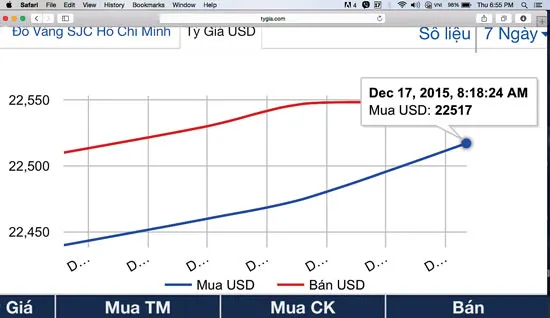 Trong ngày 17-12, trước thông tin FED quyết định tăng lãi suất thêm 0,25%, tỷ giá USD tại các ngân hàng thương mại trong nước vẫn giữ khoảng cách như vài ngày qua là chiều bán ra ở mức kịch trần (22.547 đồng/USD), còn chiều mua vào ở mức từ 22.500 - 22.517 đồng/USD. Theo Phó Thống đốc Nguyễn Thị Hồng, sau khi FED công bố tăng lãi suất, thị trường giao dịch khá ít. Tháng 10 và tháng 11 nước ta xuất siêu, như vậy rõ ràng có phần xuất siêu về thương mại. Trong khi đó, dòng vốn FDI vẫn tiếp tục chảy vào Việt Nam, bên cạnh đó là lượng kiều hối từ nước ngoài gửi về. Qua đó cho thấy, cung cầu ngoại tệ trong thời gian qua không có đột biến.