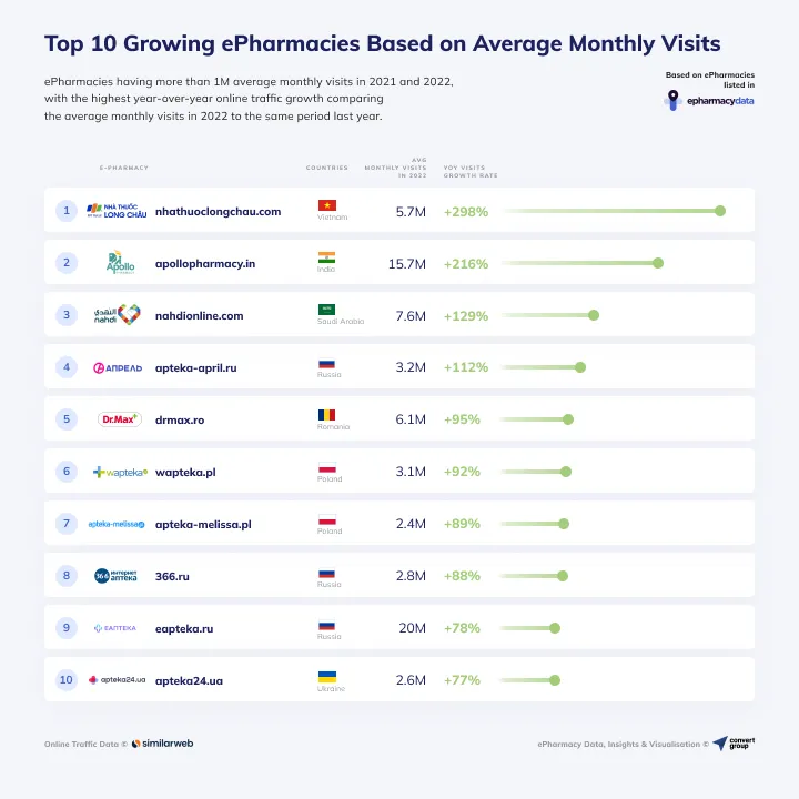 Bảng xếp hạng cũng cho thấy xu hướng và tầm quan trọng của ngành e-Pharmacy (nhà thuốc - y tế trực tuyến) trong thời kỳ hậu covid và bình thường mới, khi người tiêu dùng đã quen thoải mái hơn với việc mua hàng trực tuyến.
