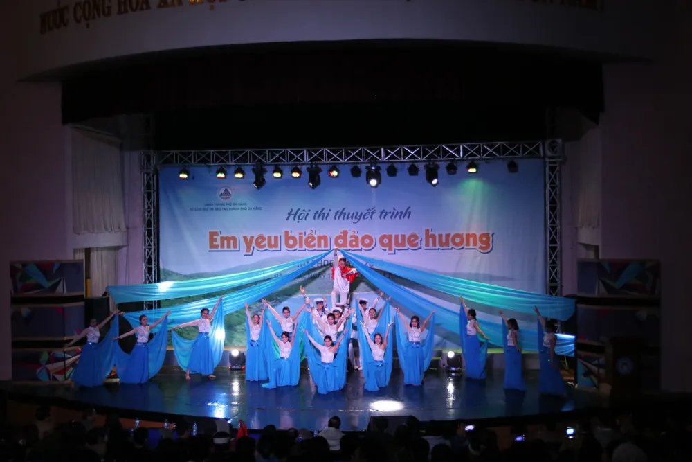 Tiết mục văn nghệ về Biển đảo quê hương do các em học sinh Trường THPT Phan Châu Trinh (Đà Nẵng) dàn dựng và thực hiện