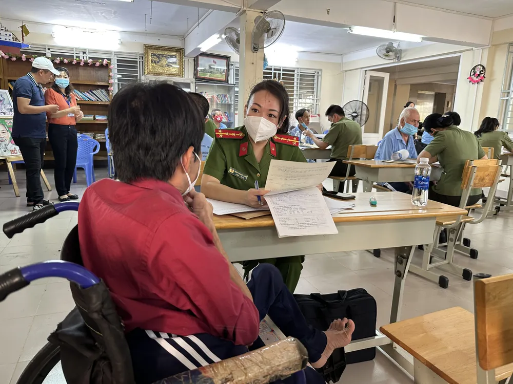 Công an TPHCM phối hợp cùng các đơn vị cấp CCCD cho các trường hợp công dân thuộc diện nhân khẩu đặc biệt ở Trung tâm bảo trợ người tàn tật Hiệp Bình Chánh