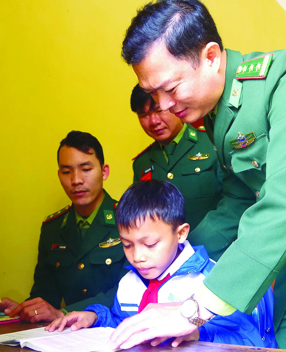 Bộ đội Biên phòng Thừa Thiên - Huế phụ đạo học sinh huyện A Lưới trước khi trở lại trường. Ảnh: VÕ TIẾN