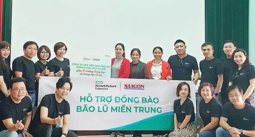 Báo SGGP và Công ty HPE Việt Nam trao 100 triệu đồng hỗ trợ Phòng GD-ĐT huyện A Lưới, tỉnh Thừa Thiên-Huế sửa chữa 17 trường học bị hư hỏng do bão số 9. Ảnh: VĂN THẮNG