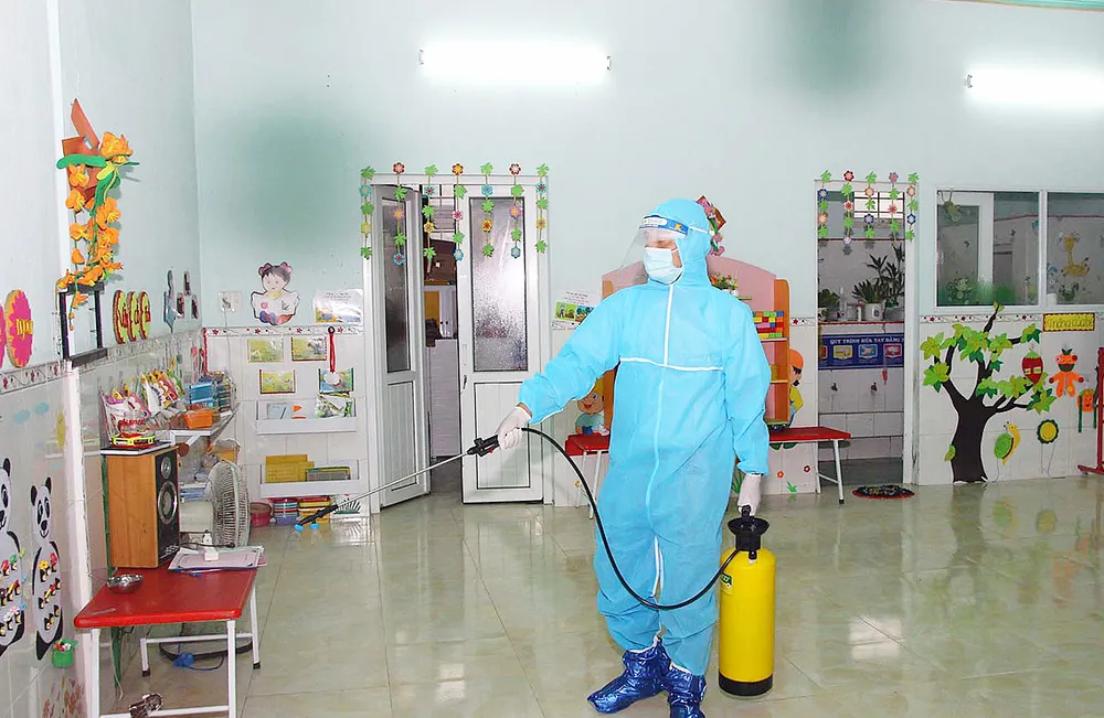 Phun thuốc tiêu trùng, khử độc để phòng chống dịch bệnh ngay khi nước lũ rút tại Trường Mầm non Phong Bình 1 (tỉnh Thừa Thiên -Huế). Ảnh: VĂN THẮNG