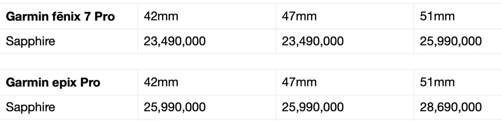 Cả fēnix 7 Pro và epix Pro đều sẵn 3 tùy chọn kích cỡ: 42mm, 47mm và 51mm, phiên bản Sapphire, tất cả hiện có mặt trên cửa hàng trực tuyến Garmin.com.vn, hay cửa hàng thương hiệu Garmin tại TPHCM và Hà Nội, Đà Nẵng, cũng như các đại lý bán lẻ của Garmin trên toàn quốc.