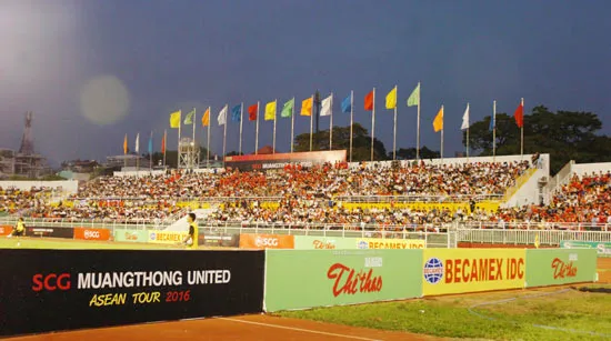 Sân Thống Nhất đêm qua được biến thành lễ hội, với gần 2 vạn khán giả hò reo suốt trận. Trận cầu nằm trong Tour du đấu vòng quanh ASEAN của SCG Muangthong United mang thông điệp bóng đá tấn công đã đến với người hâm mộ.