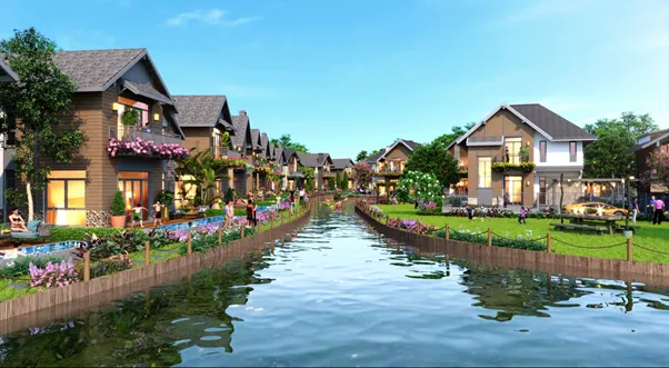 Lấy cảm hứng từ kiến trúc và tinh thần của làng Giethoorn (Hà Lan), tại phân khu rộng 55 ha, những dãy biệt thự Lagoon tái hiện “ngôi làng cổ tích” châu Âu, làm nên bức tranh sống động với sắc hoa rực rỡ, cây xanh bao phủ. Hệ thống kênh đào Lagoon dài 3,8 km, bao quanh các căn biệt thự vừa tạo cảnh quan yên bình, vừa góp phần điều tiết khí hậu, giúp không khí trong nhà luôn mát mẻ, dễ chịu. Đây là nơi để các thành viên thư giãn với những buổi trà chiều, chèo thuyền kayak giữa cảnh sắc thơ mộng.