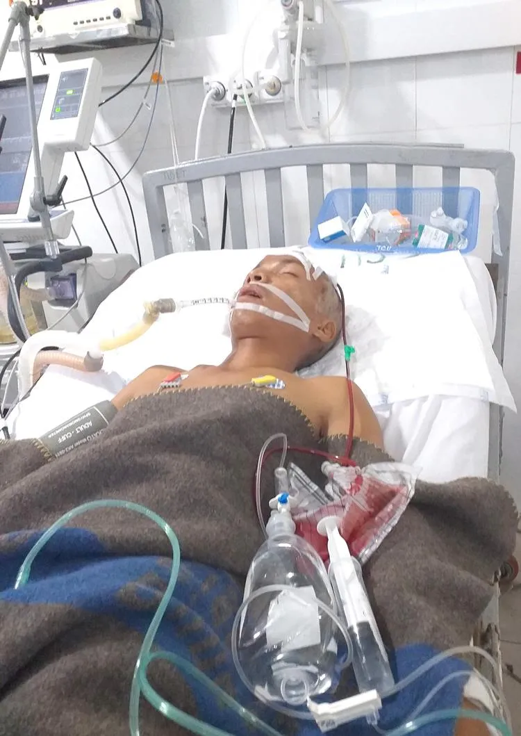 Anh Lê Văn Miên đang điều trị tại Khoa Hồi sức cấp cứu tích cực chống độc Bệnh viện Đa khoa Đà Nẵng