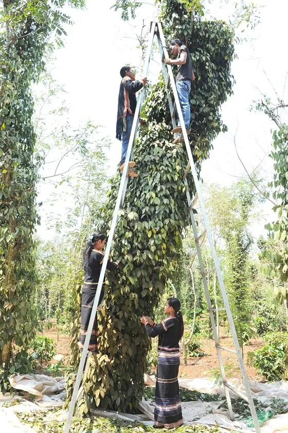 Thu hoạch hồ tiêu ở tỉnh Đắk Lắk. Ảnh: AN MỸ