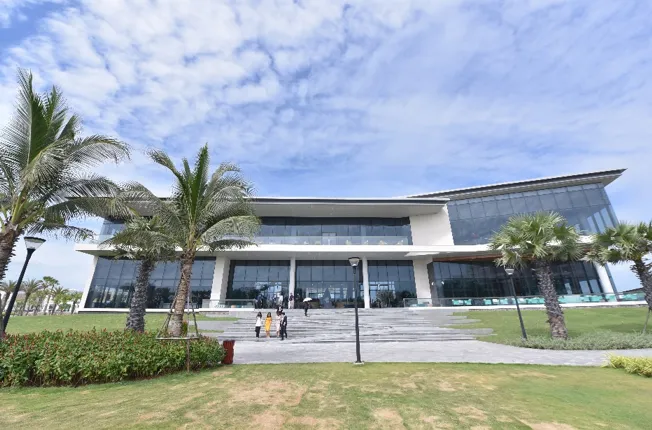 Với tầm nhìn hướng biển cùng không gian đa dạng như tiền sảnh, quầy bar, nhà hàng…, trung tâm đón tiếp khách hàng Welcome Center rộng 2.500m² đã hoàn thiện và đi vào hoạt động.