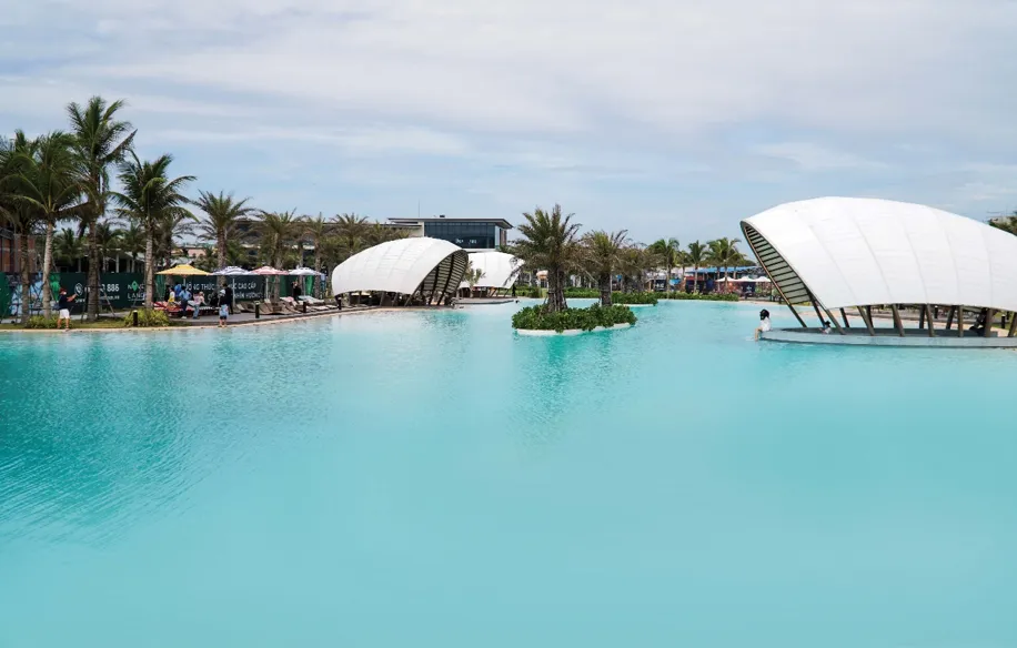 Hồ bơi nước mặn Ocean Pool là tiện ích nổi bật thuộc phân kỳ The Tropicana, tọa lạc sát bãi biển Hồ Tràm thơ mộng. Hồ bơi có quy mô 5.000m², sử dụng trực tiếp nguồn nước biển qua hệ thống lọc, mang đến trải nghiệm như trên một bãi biển thực thụ.