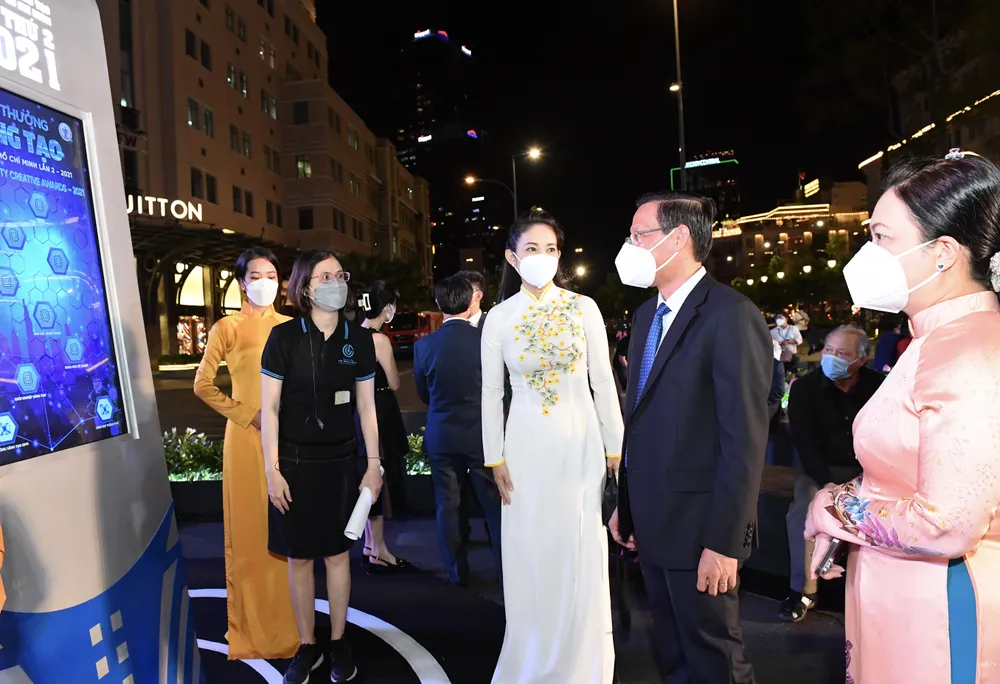 Chủ tịch UBND TPHCM Phan Văn Mãi trao giải Nhất Giải thưởng sáng tạo TPHCM 2021. Ảnh: VIỆT DŨNG