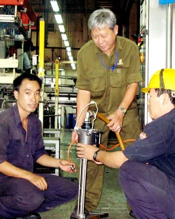 Hơn 30 năm công tác ở Công ty TNHH Cơ khí Sabeco (Tổng Công ty Bia Rượu Nước giải khát Sài Gòn), biệt danh “bác thợ cả Hai Dần” của anh Nguyễn Văn Dần (ảnh giữa) là một thương hiệu được lãnh đạo tín nhiệm khi các đường ống “sinh chuyện”. Ngoài công việc chủ yếu của một tổ trưởng trực tiếp điều hành, kiểm tra các thiết bị trong dây chuyền sản xuất…,  anh Hai Dần còn là một “cây sáng kiến” của tổng công ty.
