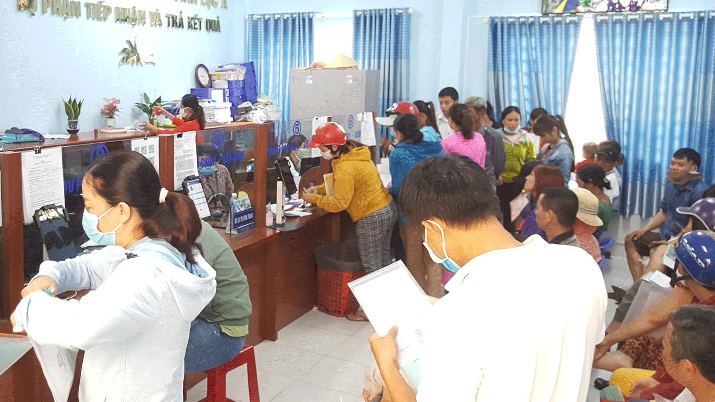 Hơn 8 giờ sáng, Bộ phận tiếp nhận và trả kết quả tại UBND xã Vĩnh Lộc A, huyện Bình Chánh có gần trăm người dân đang chờ tới lượt. Ở bên ngoài cửa phòng, 15 chiếc ghế đá cũng kín người ngồi ghi hồ sơ và ngồi chờ. Theo ông Trần Vũ Hữu Duy, Chủ tịch UBND xã Vĩnh Lộc A, hầu như ngày nào phường cũng đông người dân tới làm thủ tục như vậy. Mỗi ngày làm việc thường kéo dài 12 tiếng, kể cả thứ bảy, chủ nhật, ngày lễ cũng phải huy động anh em vào làm việc. “Với từng này người, công việc đã rất áp lực, làm không hết việc. Nếu tiếp tục giảm cán bộ không chuyên trách thì không thể quán xuyến được”, ông Trần Vũ Hữu Duy lo lắng.