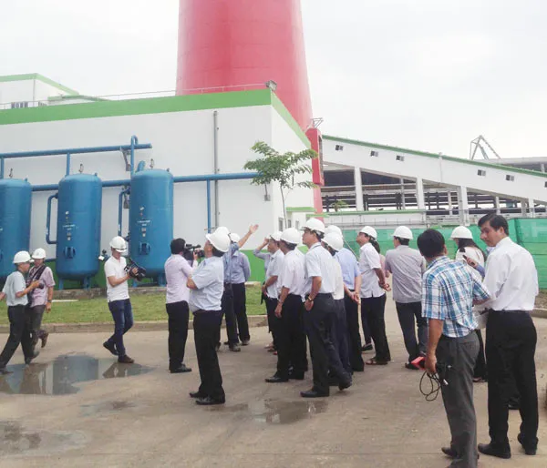 Các ngành chức năng tỉnh Hậu Giang kiểm tra Nhà máy Giấy Lee & Man. Ảnh: Cao Phong