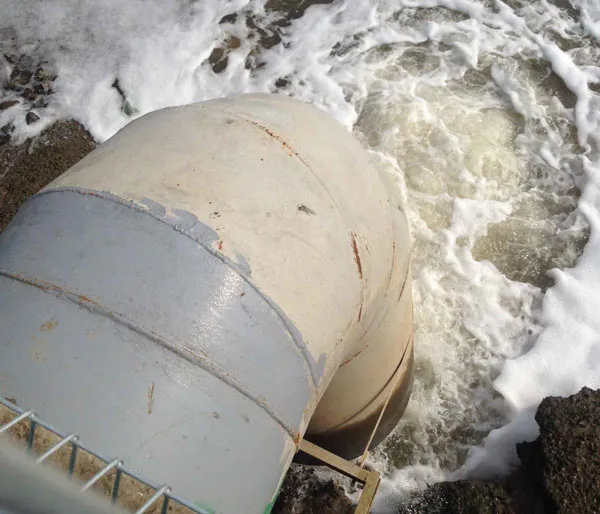 Nhà máy Giấy Lee & Man đưa ống xả thải lên trên mặt nước theo yêu cầu của địa phương. Ảnh: Cao Phong