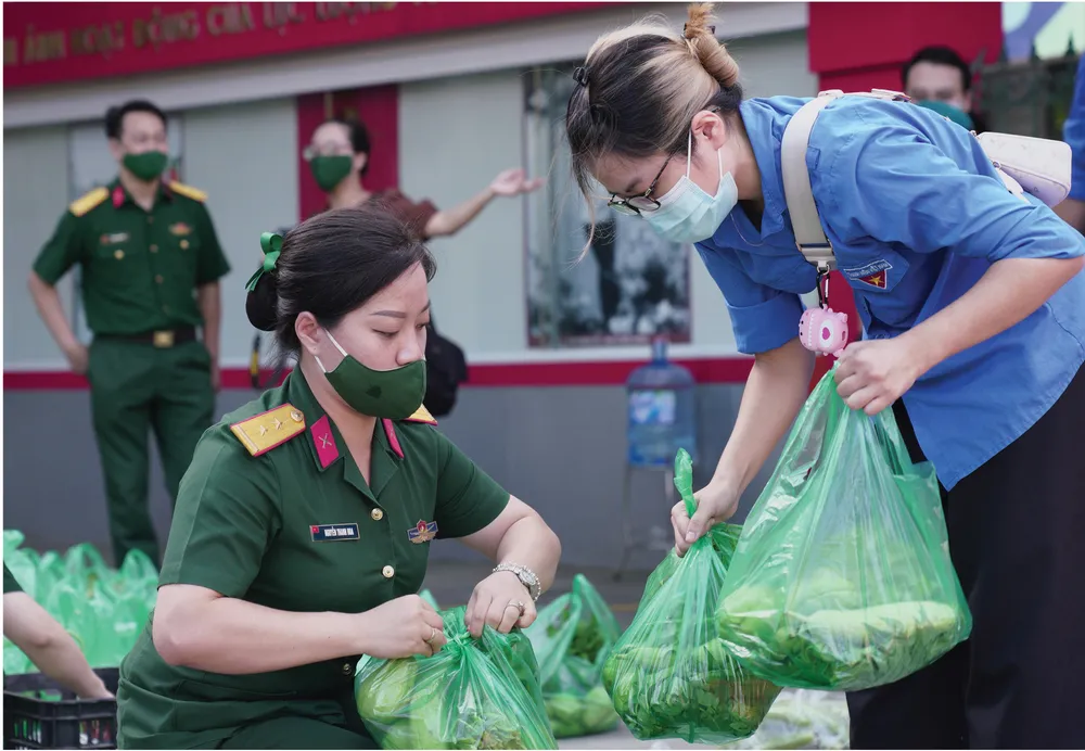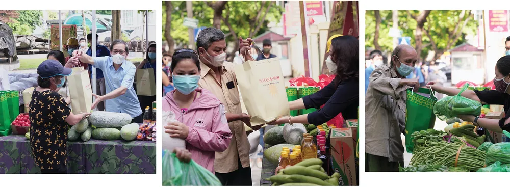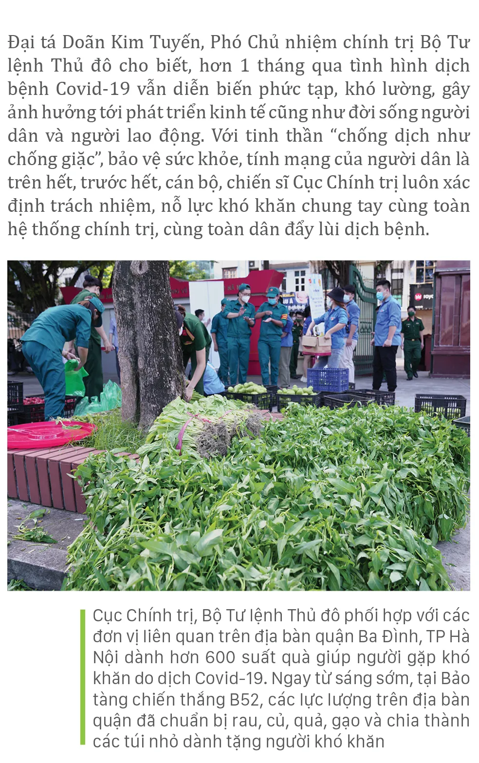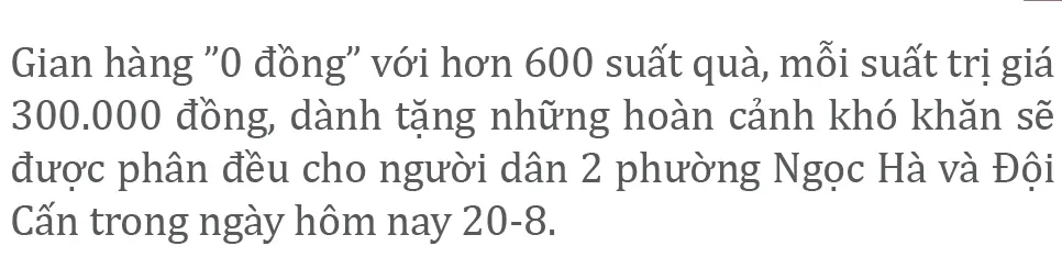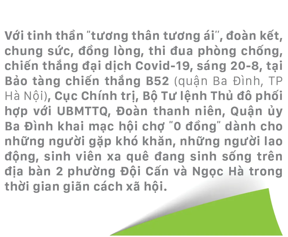 Với tinh thần "tương thân tương ái'', đoàn kết, chung sức, đồng lòng, thi đua phòng chống, chiến thắng đại dịch Covid-19, sáng 20-8, tại Bảo tàng chiến thắng B52 (quận Ba Đình, TP Hà Nội), Cục Chính trị, Bộ Tư lệnh Thủ đô phối hợp với UBMTTQ, Đoàn thanh niên, Quận ủy Ba Đình khai mạc hội chợ "0 đồng" dành cho những người gặp khó khăn, những người lao động, sinh viên xa quê đang sinh sống trên địa bàn 2 phường Đội Cấn và Ngọc Hà trong thời gian giãn cách xã hội.