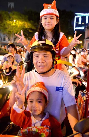 Từ 14 giờ chiều 24-12, không khí đón mừng Giáng sinh đã tràn ngập các ngõ xóm, họ đạo, giáo xứ trên địa bàn TPHCM. Đến 18 giờ, dù cơn mưa nặng hạt bất ngờ đổ xuống một số khu vực thuộc địa bàn quận 3, 5, 8, Bình Tân…, song không làm giảm đi dòng người và các loại phương tiện tấp nập đổ về các khu vui chơi, mua sắm và các tuyến đường dẫn vào trung tâm TP.