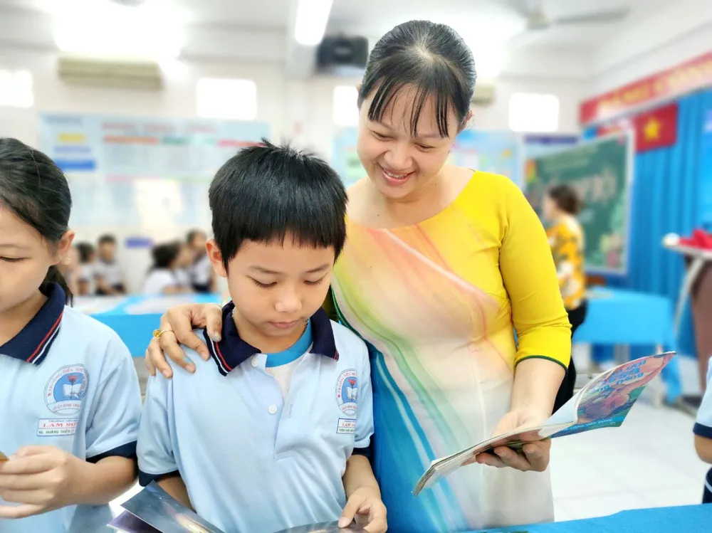 17 năm trước, sau khi tốt nghiệp lớp 12, nữ sinh Nguyễn Thị Minh Hiếu thi đậu cả hai trường đại học kinh tế và sư phạm. Thời điểm đó, vì thực hiện ước mơ của bố, Minh Hiếu chọn theo nghề giáo. Hành trang vào nghề của cô tân sinh viên năm ấy chỉ đơn giản là sự háo hức, mong muốn truyền đạt thật nhiều kiến thức cho học trò. Qua nhiều năm công tác, lòng yêu nghề chẳng những không giảm đi mà trở thành động lực thôi thúc cô giáo trẻ áp dụng thêm nhiều phương pháp tích cực trong dạy học. Chia sẻ với chúng tôi về môi trường đang công tác, cô Minh Hiếu cho biết, hầu hết phụ huynh học sinh Trường Tiểu học Lam Sơn (quận Bình Thạnh) đều là dân lao động, ít quan tâm và sâu sát việc học của con. Hiểu được thiệt thòi của học sinh, cô giáo trẻ đã chủ động gần gũi, tìm hiểu hoàn cảnh gia đình từng em để có biện pháp giáo dục về đạo đức, lối sống phù hợp với các em từ những điều nhỏ nhất.