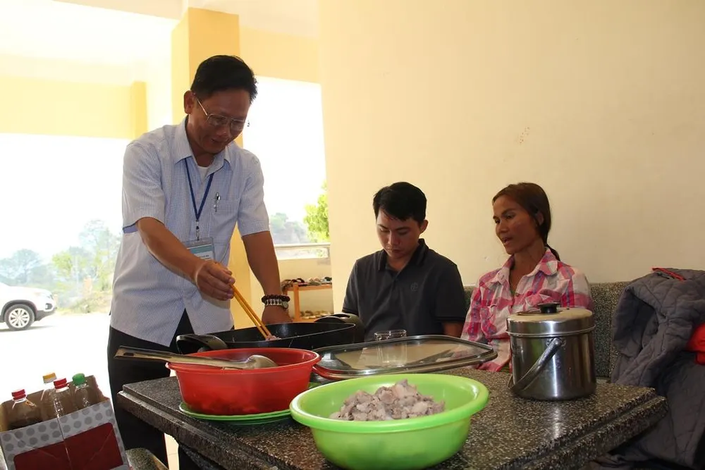 “Ngoài ra, một tổ tự quản phụ huynh được thành lập và họ sẽ phân công từng người lên trường để phụ giáo viên nấu ăn, trông coi các cháu buổi trưa cho đến khi các cháu vào học thì về. Ngày thấp nhất thì trường nấu ăn cho 16 học sinh, ngày cao nhất là 46 học sinh. Từ lúc tổ chức nấu ăn, học sinh không còn nghỉ học nữa. Điều này chính là động lực cho giáo viên tiếp tục triển khai công việc nấu ăn trưa miễn phí cho học sinh thôn Long Nan" thầy Ninh cho biết.