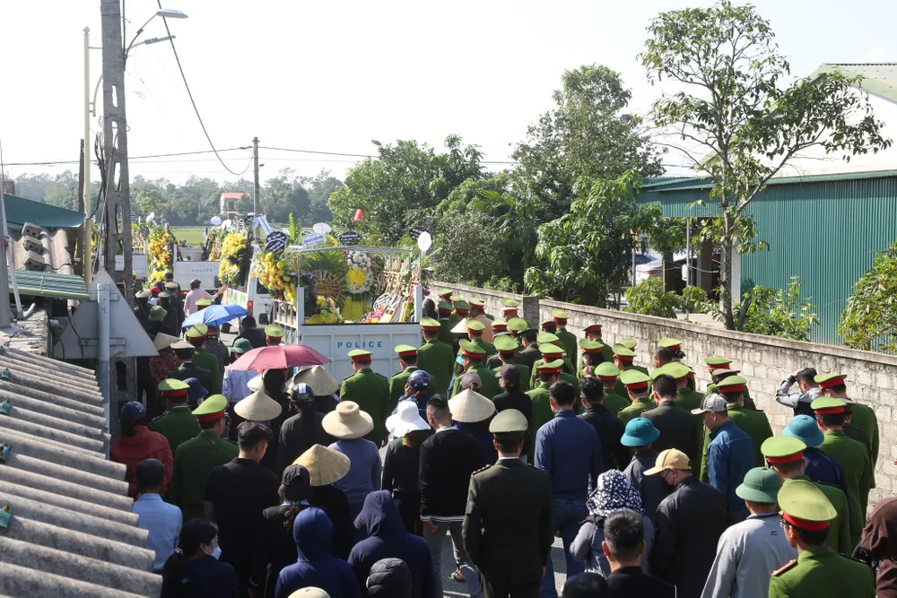Trong niềm tiếc thương vô hạn, chiều 18-11, gia đình, bạn bè, đồng chí, đồng đội, bà con lối xóm đã tiễn đưa Đại úy Trần Trung Hiếu, cán bộ Công an xã Xuân Hồng (Nghi Xuân, tỉnh Hà Tĩnh) hy sinh khi làm nhiệm vụ về nơi yên nghỉ cuối cùng.