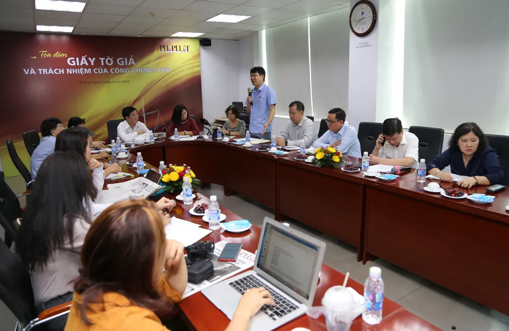 Các ý kiến tại tọa đàm đều thống nhất là giấy tờ giả đã trở thành vấn nạn đáng báo động. Ông Nguyễn Trí Hòa, Trưởng Phòng công chứng số 1 kể hầu như ngày nào cũng phát hiện việc giả mạo trong công chứng, hoặc là giả chủ thể, hoặc là giả giấy tờ. Có trường hợp công chứng bán căn nhà trên đường Võ Thành Trang (quận Tân Bình), chồng nhờ người đóng giả vợ làm giấy ủy quyền bán nhà. Ngược lại cũng có trường hợp vợ thuê người đóng giả chồng để ủy quyền bán nhà ở quận 2. Ở quận 8 còn có trường hợp con lấy giấy tờ thật rồi nhờ người giúp việc đóng giả bố mẹ ra công chứng bán nhà.