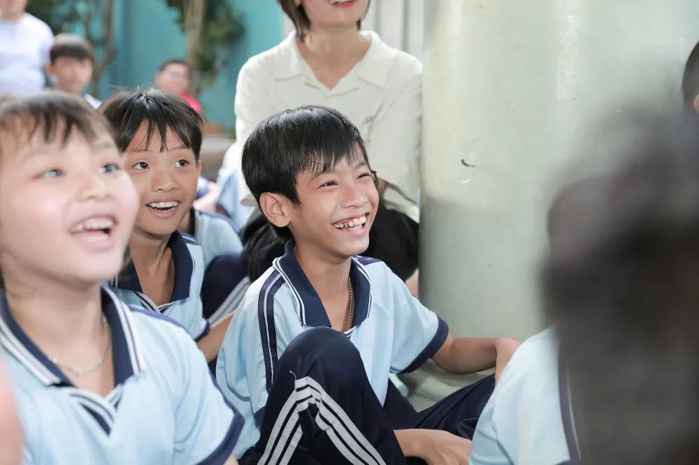 Những tiếng cười giòn tan của các em vang trong hội trường khi được xem những tiết mục biểu diễn kỳ thú. Với nhiều em, đây có thể là lần đầu tiên trong đời được xem ảo thuật gia biến chiếc khăn thành một con vẹt hay được sờ vào một chú rắn hiền lành. Với nhiều em, đây có thể cũng là lần đầu tiên khái niệm về một Giáng sinh được nhận quà lại trở nên sống động và tràn đầy niềm vui đến vậy. Những trải nghiệm có thể bình thường với bao em bé ngoài kia, bằng tình yêu của đội tình nguyện áo đỏ, đã trở nên thật đặc biệt khi đến với các em dưới mái trường này.