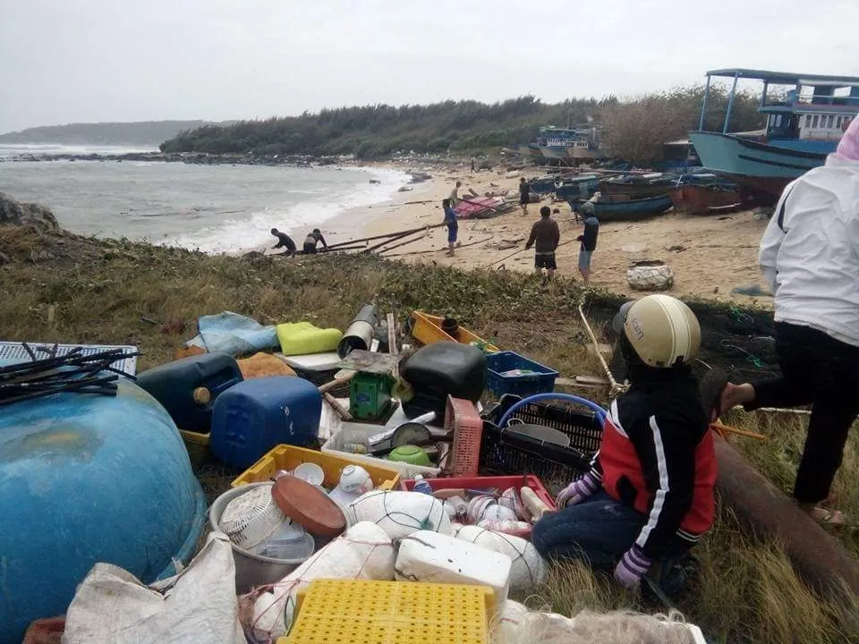 Những bè cá bị sóng đánh dạt vào đảo. Ảnh: Văn Linh