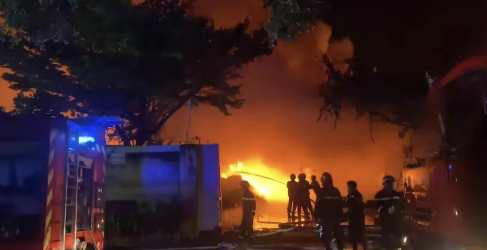 Do bên trong xưởng chứa nhiều vật dụng dễ cháy nên ngọn lửa bùng cháy dữ dội và lan rộng.