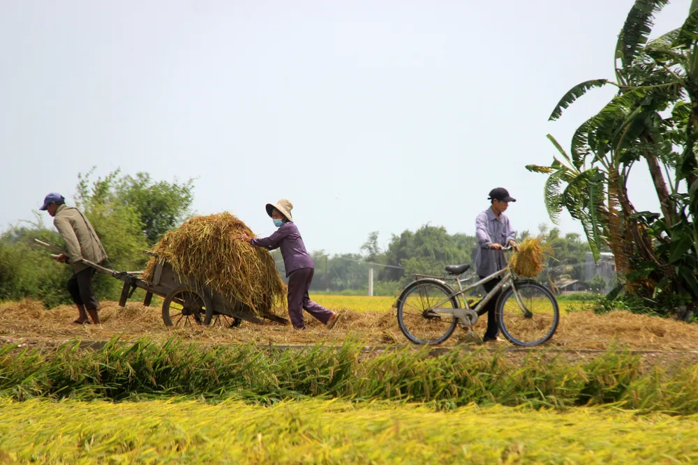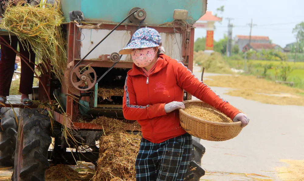 Dân quân địa phương cũng ra sức hỗ trợ gặt lúa giúp người dân