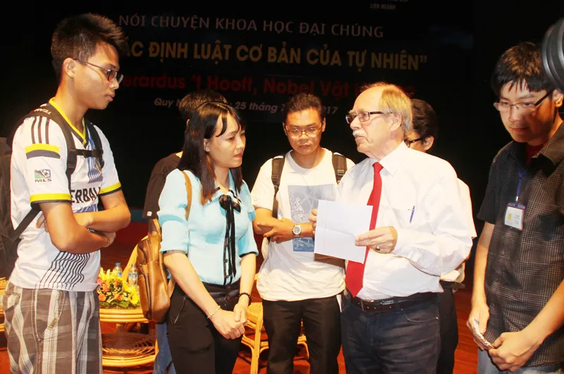 Chiều ngày 25-7, GS. Gerardus ’t Hooft đã có buổi nói chuyện với các sinh viên Việt Nam về các định luật cơ bản của tự nhiên tại Trung tâm văn hóa tỉnh Bình Định.