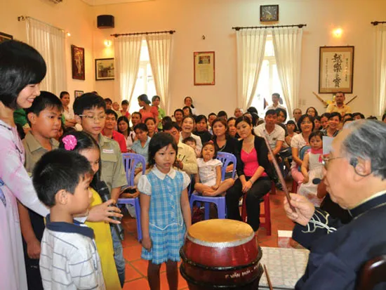 GS-TS Trần Văn Khê trong một buổi sinh hoạt âm nhạc truyền thống tại nhà riêng